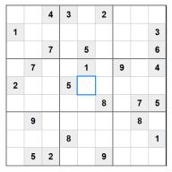 2. 縦・横の各列、および太枠内の3x3ブロックに、1~9までの数字が1つずつ入るようにします。同じ数字が入らない様に注意しましょう。